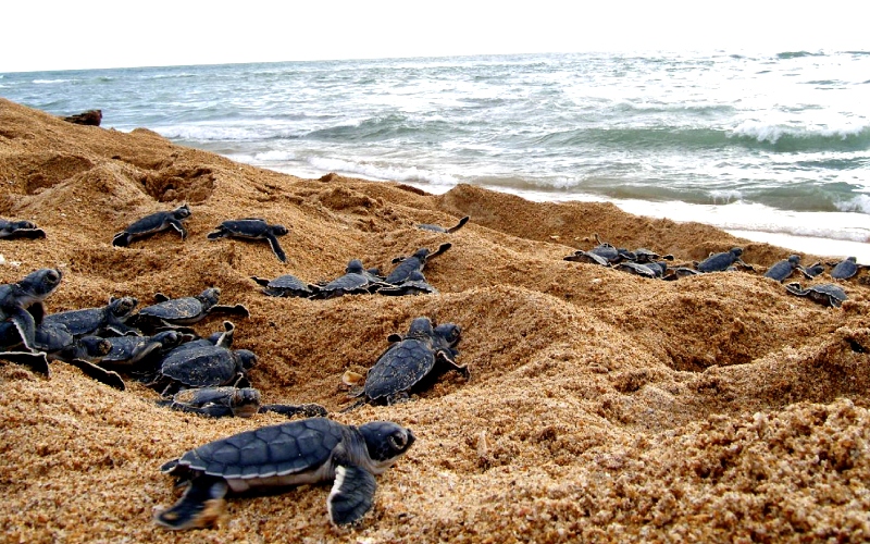 • Release the baby turtles at the same time, so they can find their way to the sea.