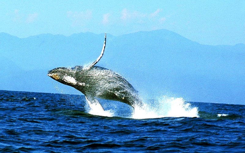 A mediados de Diciembre y a finales de Marzo, hasta 3 especies diferentes de ballenas migran a la Bahía de Banderas para dar a luz, amamantar y criar a sus jóvenes ballenatos en las cálidas aguas del océano pacífico. No hay nada más emocionante que observar a estos increíbles animales marinos en plena libertad con sus saltos, coletazos y juegos; estos tan solo son algunos de los comportamientos que podemos observar en ellos.
