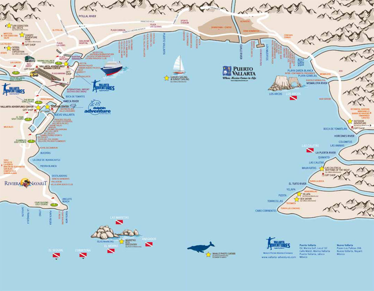 Esta justo en la Bahía de Banderas que esta la comparten 2 estados, Jalisco con Puerto Vallarta y Nayarit con Nuevo Vallarta hasta Punta de Mita. Aquí les dejo una imagen